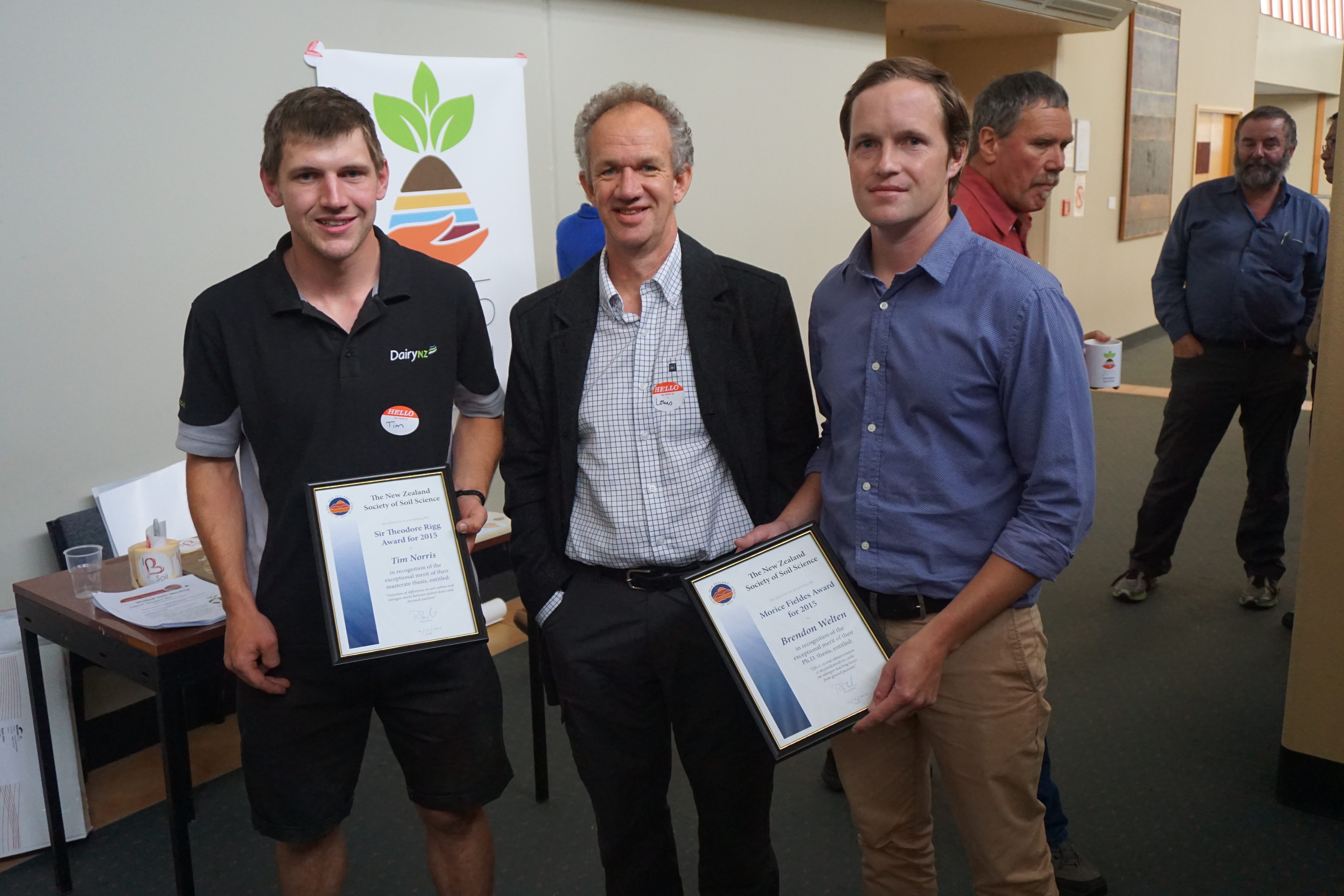 Congrats to Tim Norris and Brendon Welten who were awarded best MSc (Sir Theodore Rigg award) and PhD thesis (Morice Fieldes Award ) respectively by the New Zealand Society of Soil Science at this year’s WaiBoP conference.