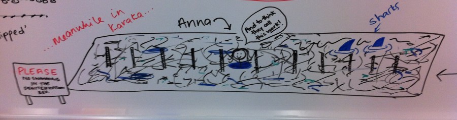 Anna samples floating woodchips