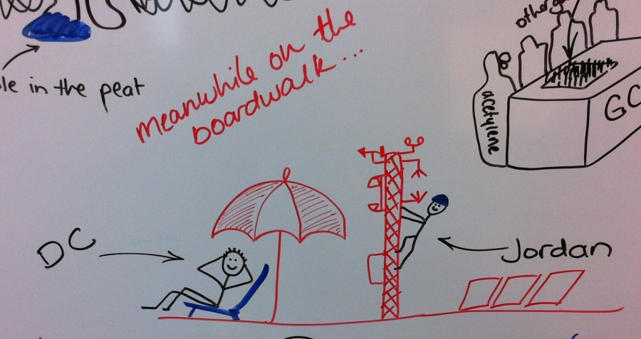 Dave chills, while Jordan works